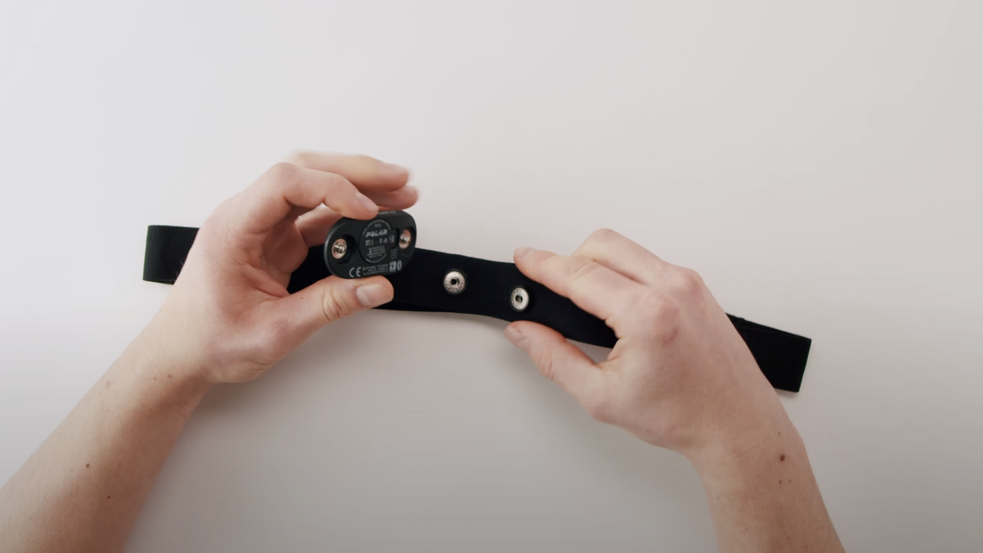 Attach the sensor to the strap Finally, reattach the sensor to the chest strap. Ensure it is firmly and correctly placed.