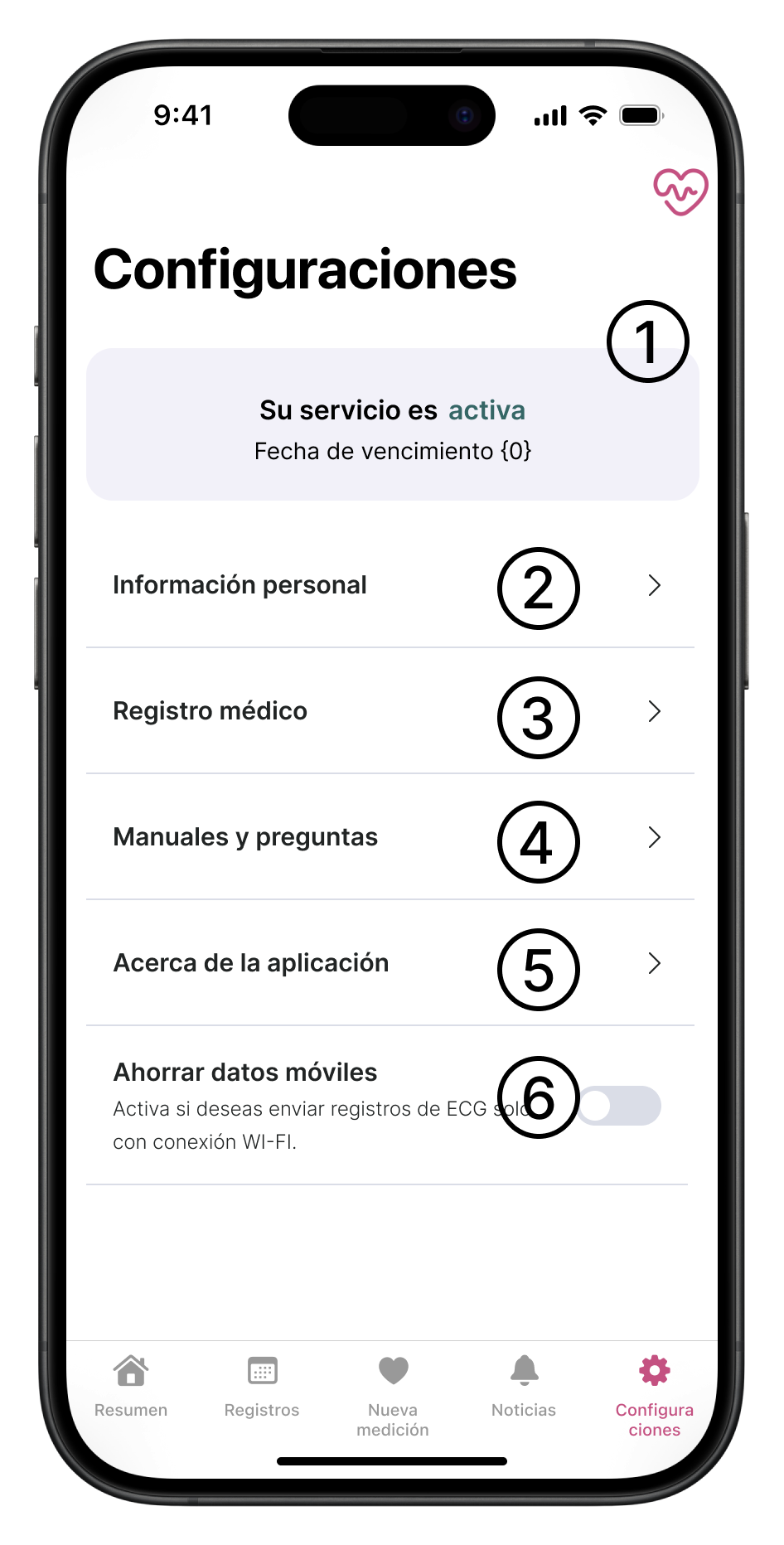 * Información sobre el registro con el cardiólogo y centro médico correspondiente.