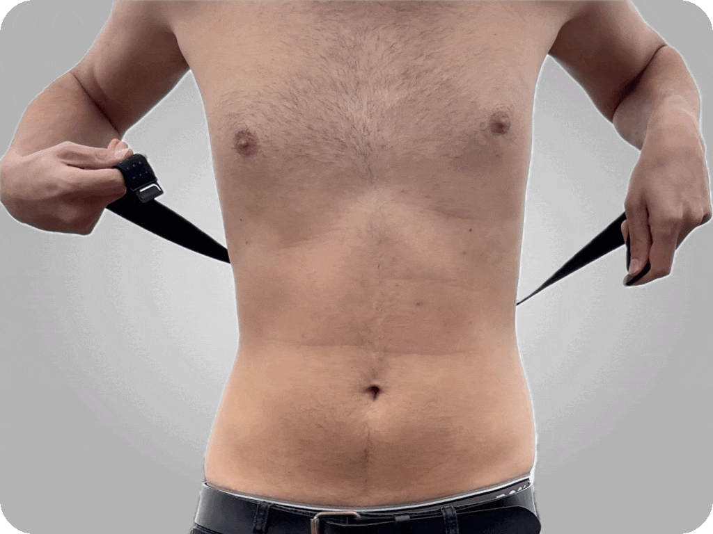 Upevněte pás, tak aby snímač byl na středu těla (mezi bradavkami) a výšce co nejvíc možné pod prsy. Pás by měl být dostatečně utažený, aby pevně držel. Ujistěte se, že elektrody jsou umístěny přímo na kůži a nejsou zakryté oblečením.